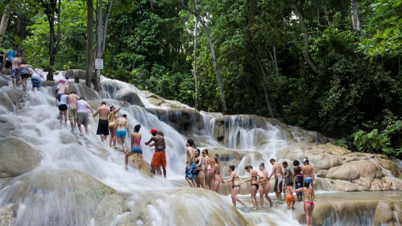 After approximately 45 minutes, you will reach the end of the river where the buses will be waiting to take you to Dunn's River Falls. Dunn's River Falls is a Jamaican national treasure that cascades over 600 feet into the Caribbean Sea. Upon arrival, your climbing guide will be arranged to escort you along the best route up the natural limestone staircase. Grab hands to form a human chain that will assist in your ascent while the cool water rushes past. Bring a camera as your guide will be happy to take your picture as he points out the many cool plunge pools you can slide into along the way.